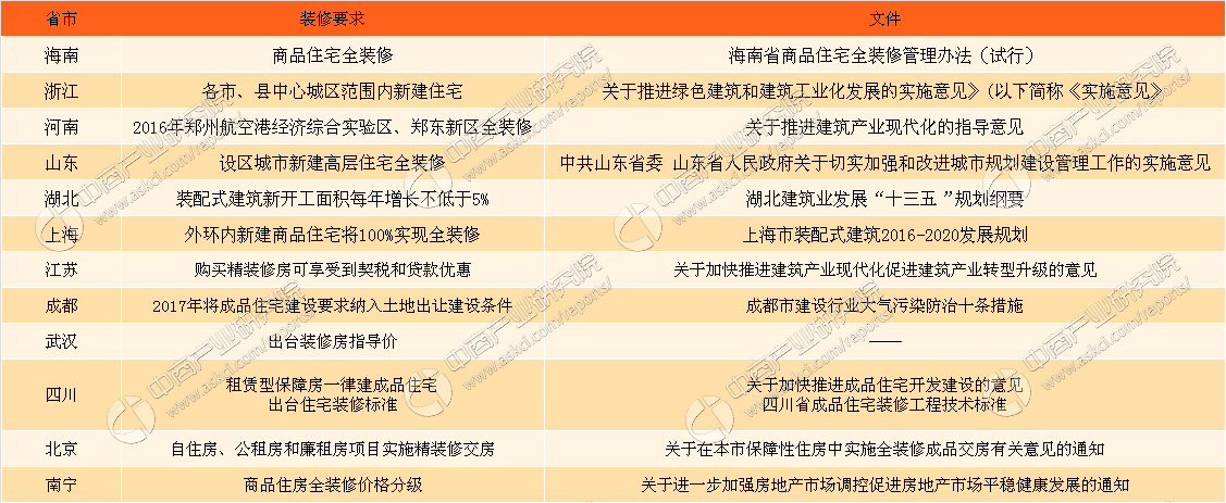 目前有12个省市出台了商品室第拆修政策文件,中国住房和城乡扶植部官网发布《建建业成长“十三五”规划》。例如,落实拆修人、拆修企业和物业办事企业等室第办理单元的义务。然而距离方针时间6年过去,权责尚未完全了了,杭州正在建、正在售的商品房开辟项目中,